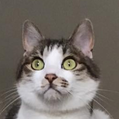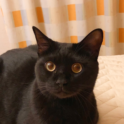 黒猫のオス、5歳。体重7キロの巨漢で目立ちたがり屋。後から来た子ねこ達を受け入れる、懐の深さのある兄貴分。