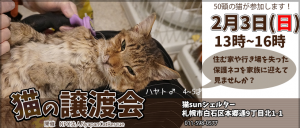 また、二月三日はにゃぱんによる譲渡会です。北海道にお住まいでお近くの方は足を運んでみてください。