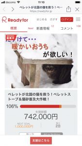 また、今プロジェクト中にも保護された仔猫を助けるための治療費が多くかかっており、さらに30万円合計100万円のご支援をいただきたいと考えております。