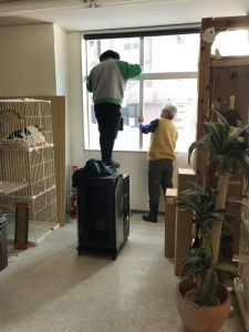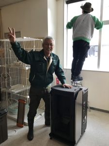 にゃぱんキャットレスキューの譲渡会会場(シェルター)にストーブが到着した後、