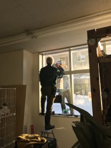 あらかじめ大家さんには許可を得ておき、窓ガラスを外し、