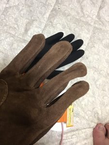 さらに作業用の革手袋を重ねます。