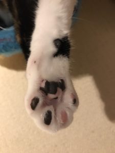 肉球は、黒ですね~ 色白なのに純黒は珍しい!